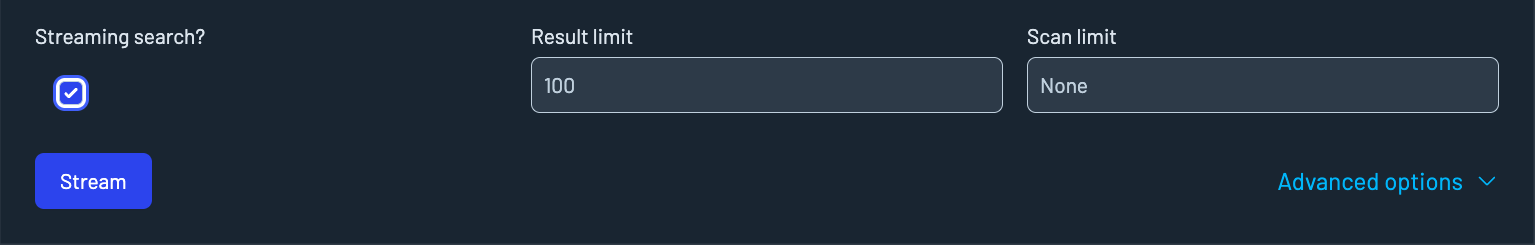 In function Streaming search is precisely the same as Data inspect, simply tick the box: